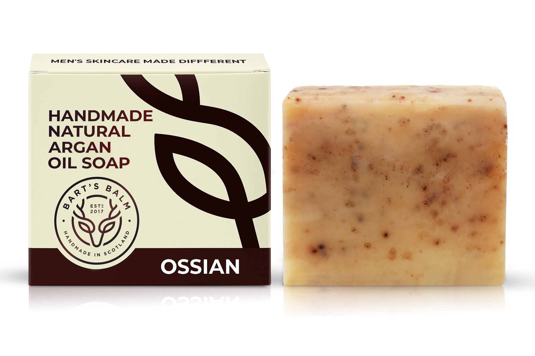 Each bar is created in Scotland using premium natural ingredients — including Argan Oil, Shea Butter, Coconut Oil and Olive Oil — to provide a creamy, conditioning lather that gently cleanses and nourishes the skin.
